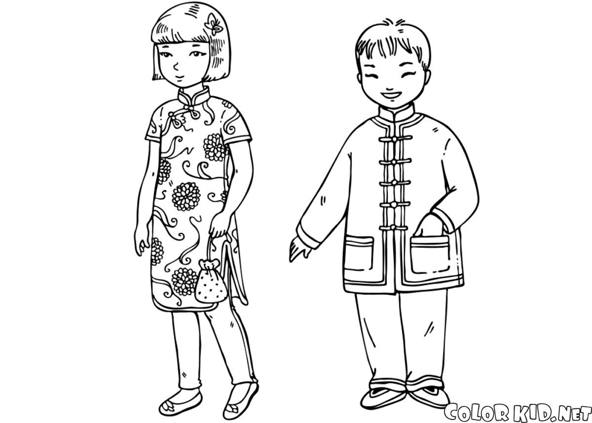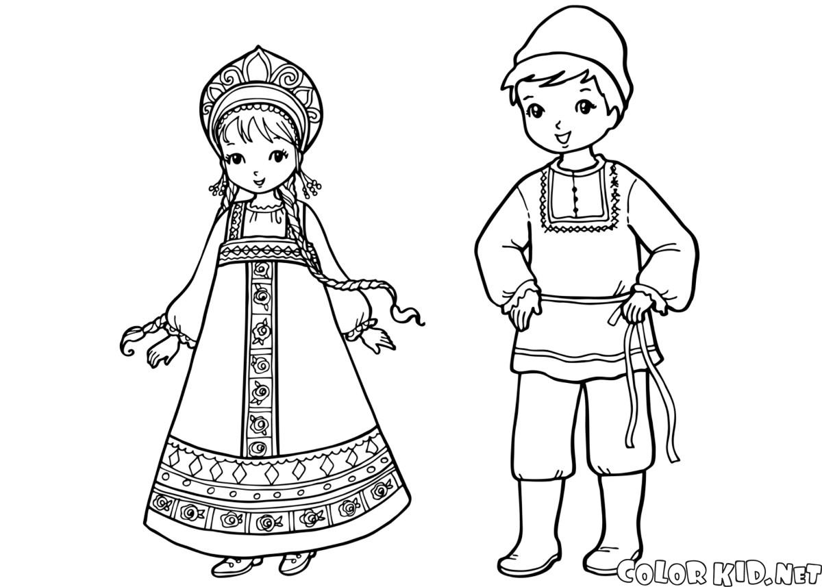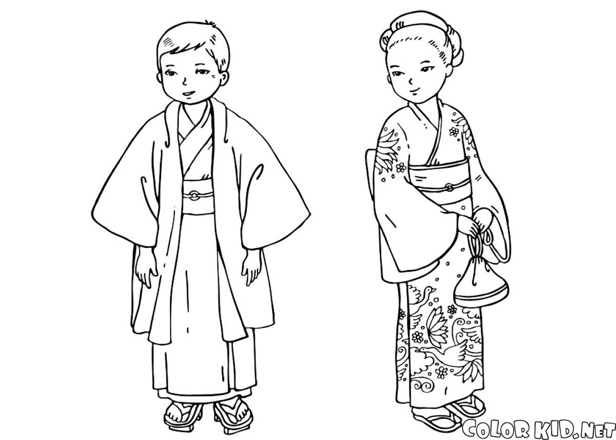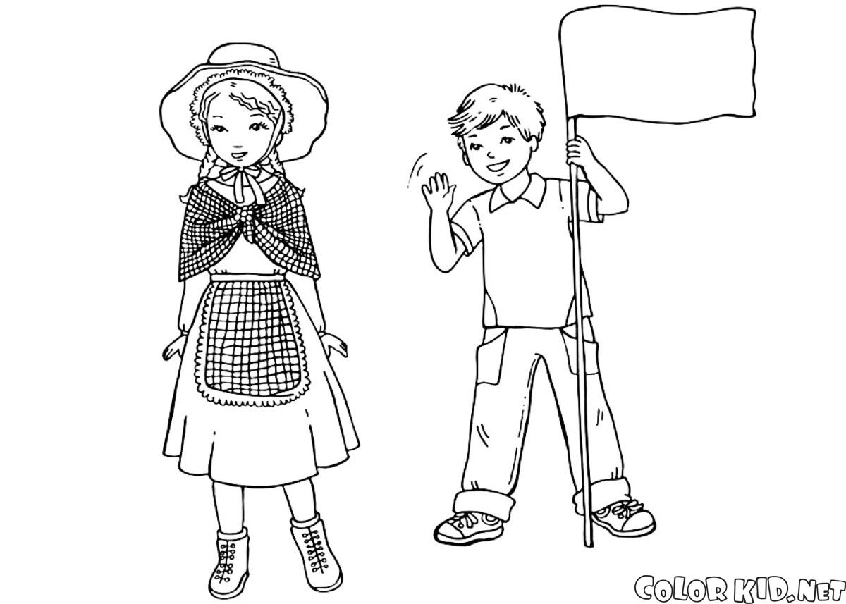 Coloring pages - Crianças em roupa tradicional
