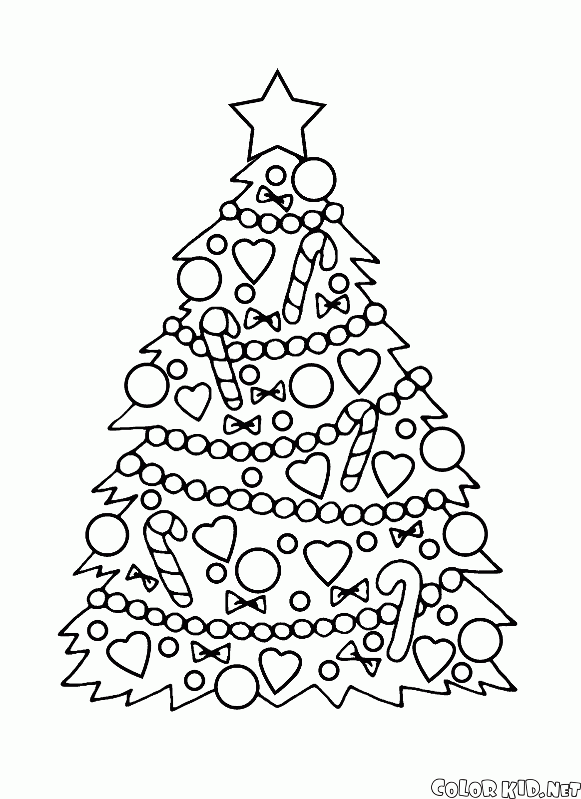 Desenho para colorir - Árvore de Natal com enfeites