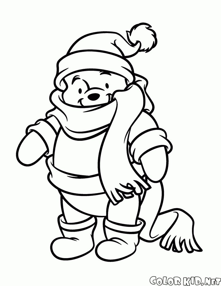 Desenho para colorir - Winnie the Pooh no inverno