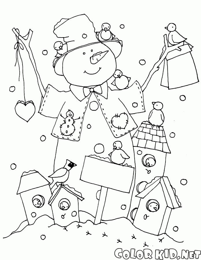 Desenho para colorir - Boneco de neve e alimentadores