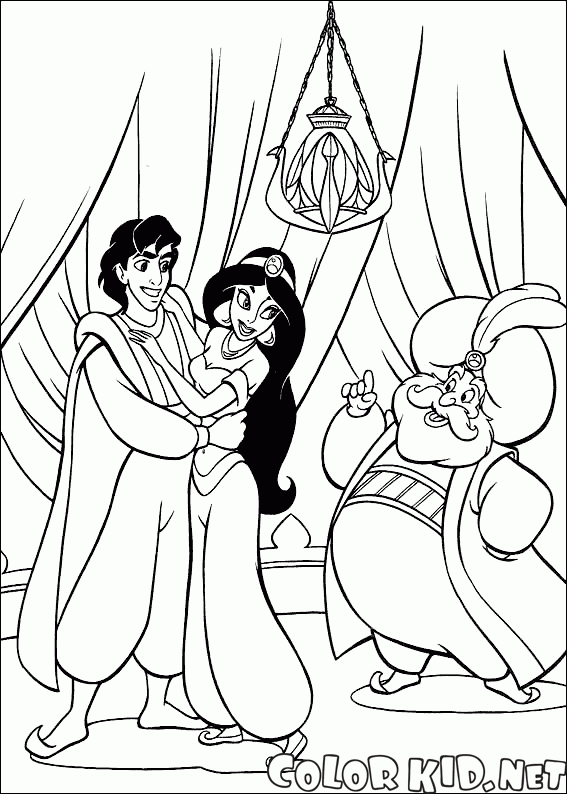Desenho para colorir - Jasmine, Aladdin eo Sultan