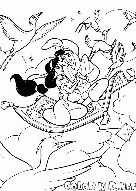 Desenho para colorir - Príncipe Ali e Jasmin