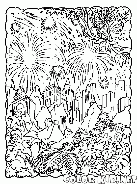 Fogos de artifício sobre a cidade