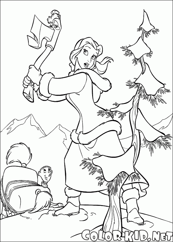 Desenho para colorir - Belle encontrou uma árvore de Natal