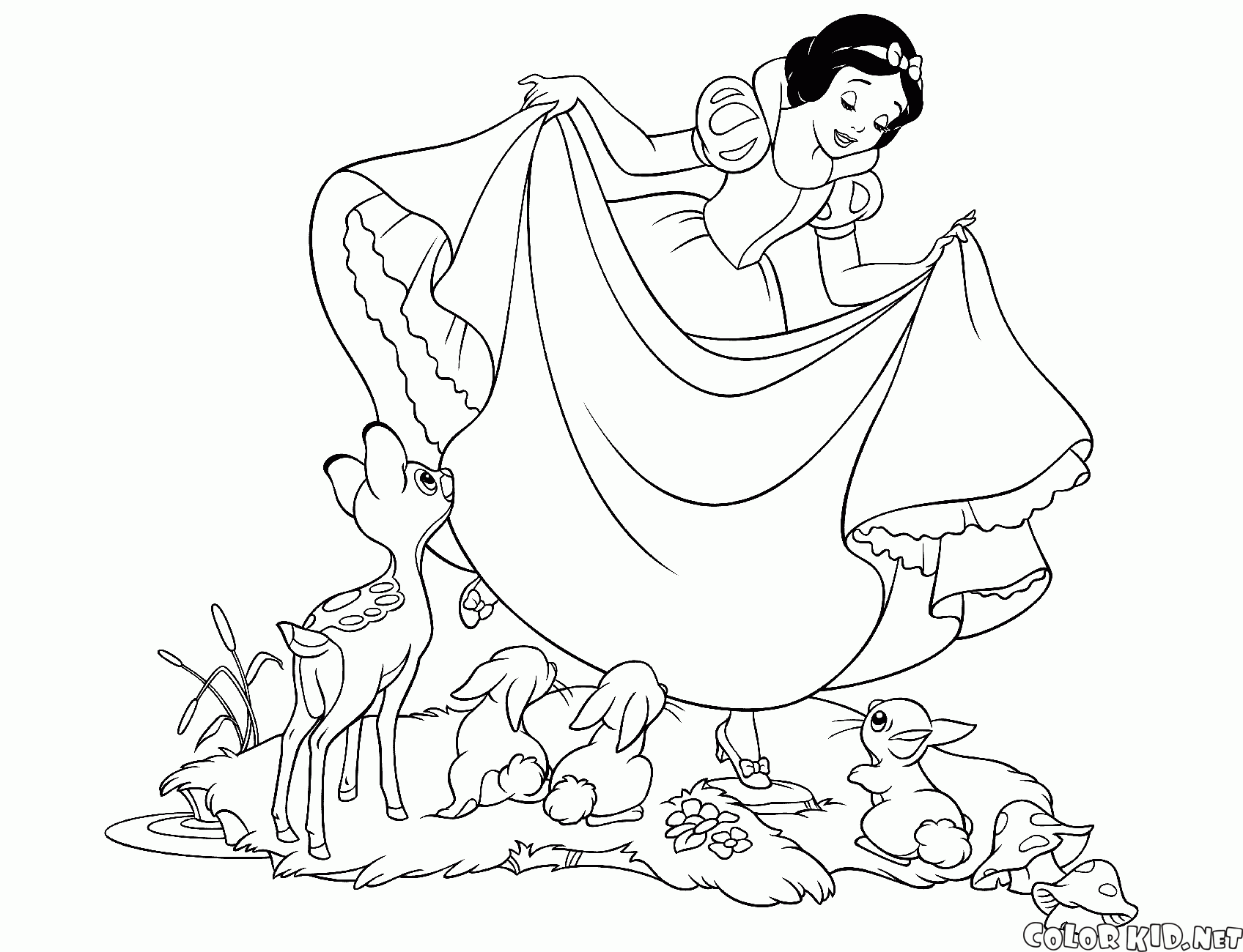 You can download and print out the coloring pages for kids Branca de Neve e animais da floresta from our website.