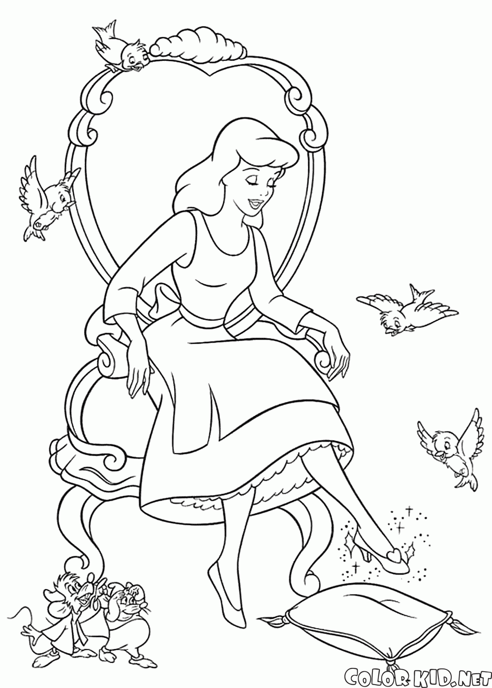Desenho para colorir - Cinderella e um sapatinho de cristal