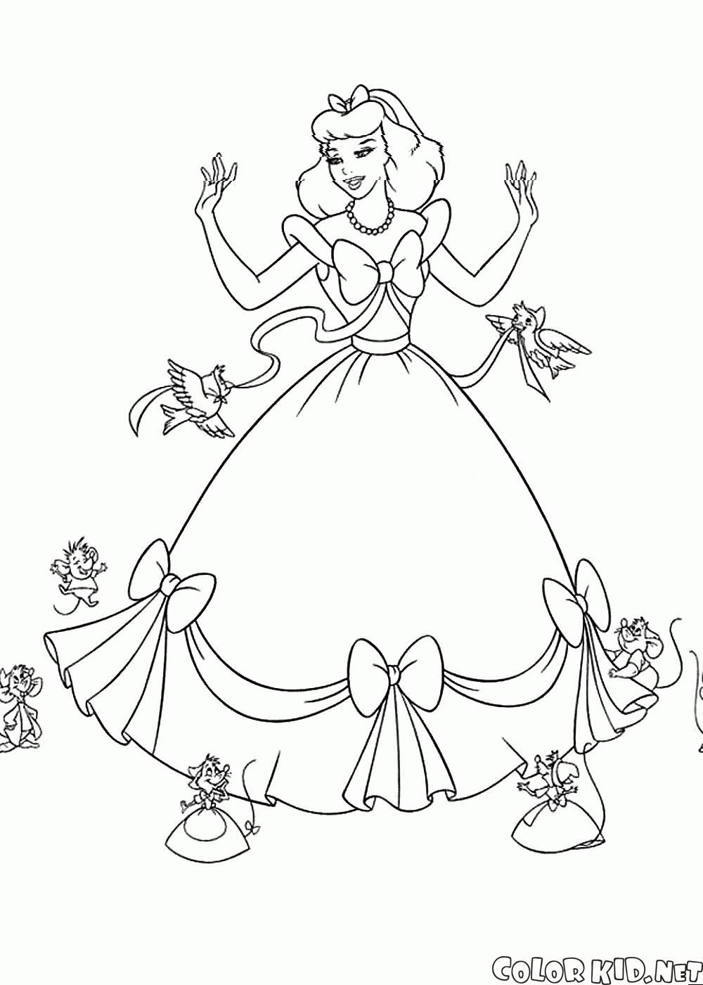 Desenho para colorir - Cinderella em um vestido bonito