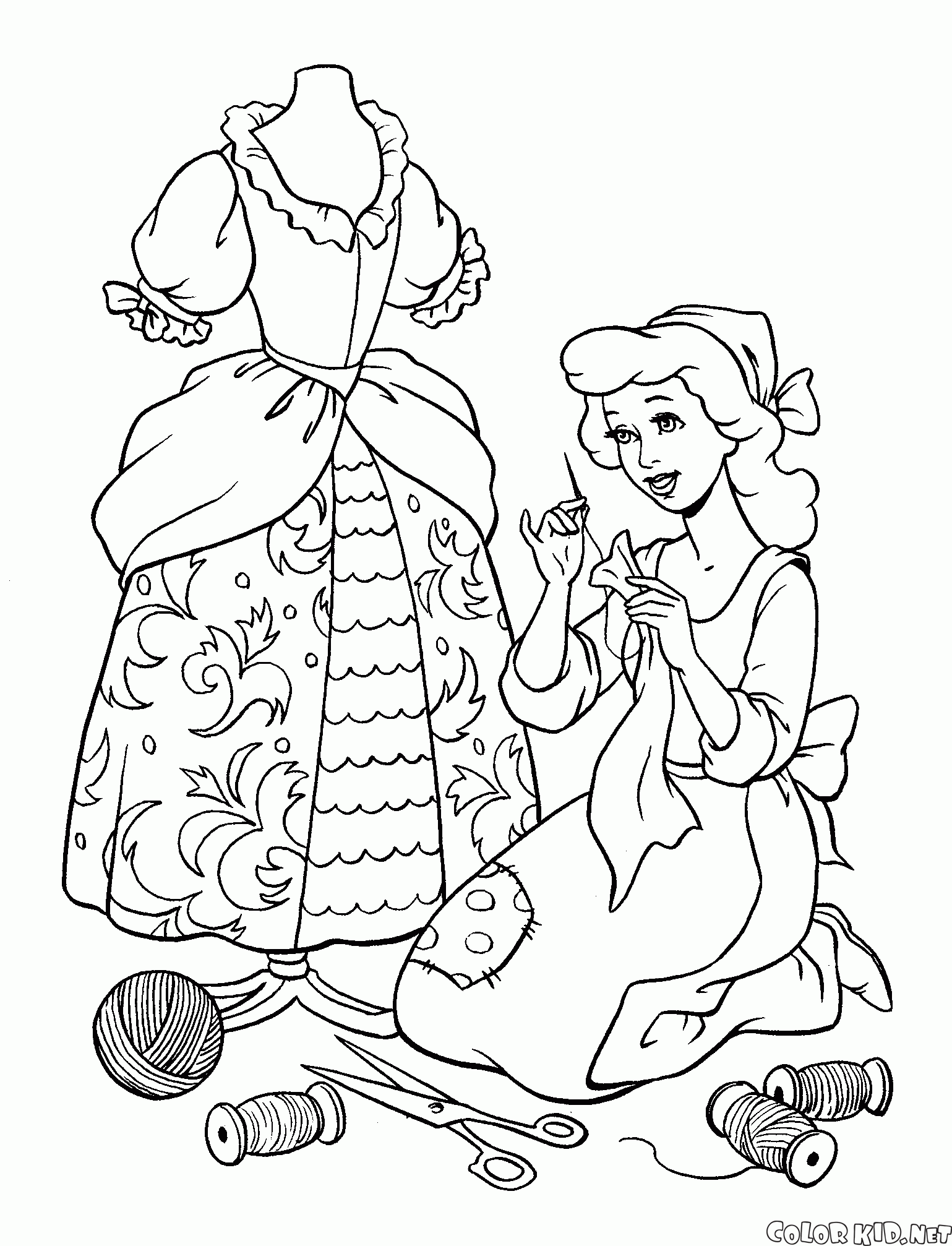 Cinderela sews vestido