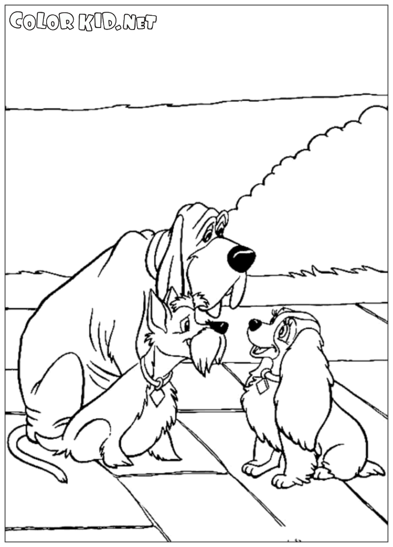 Desenho para colorir - Lady e amigos do Tramp