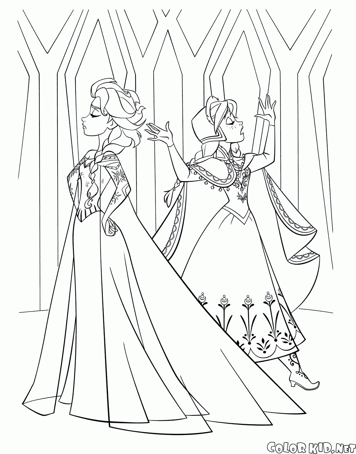 Desenho para colorir - Elsa e Anna no castelo