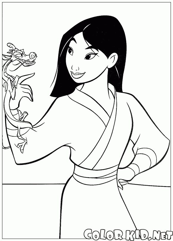 Desenho para colorir - Mulan e Mushu