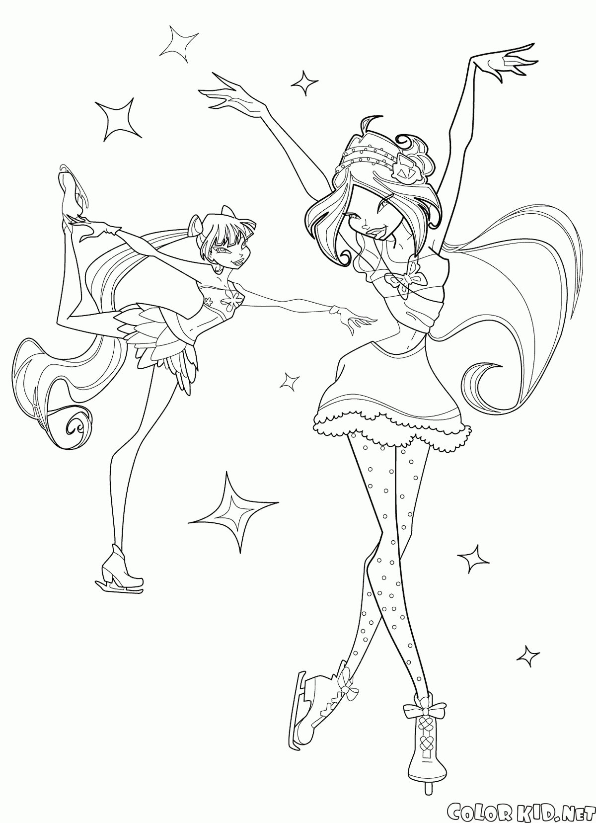 Desenho para colorir - Musa e Flora em um rinque