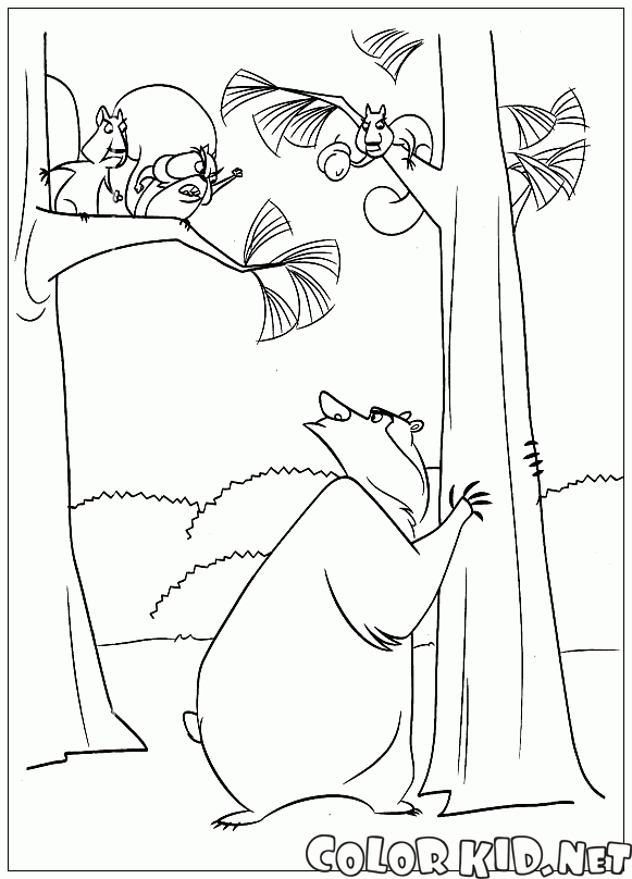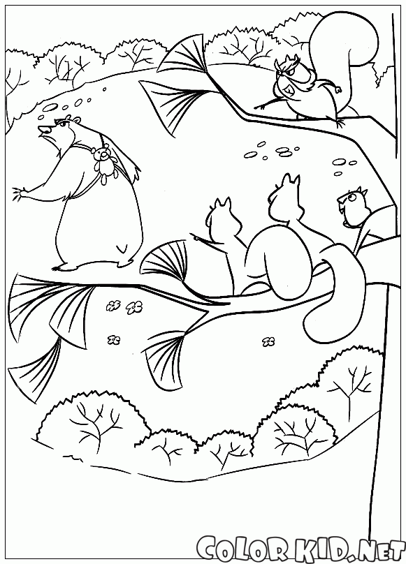Esquilos e urso