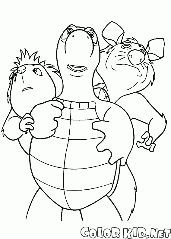 Desenho para colorir - Tartaruga e Gambá