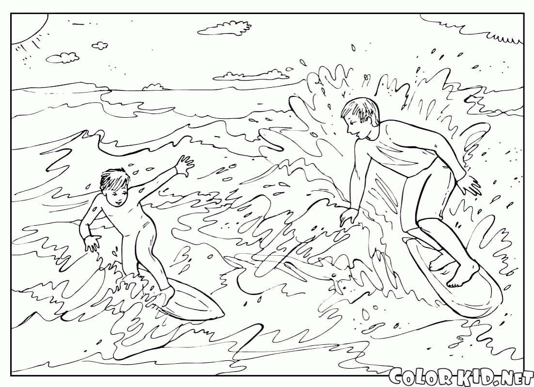 Desenho para colorir - Surfando no mar