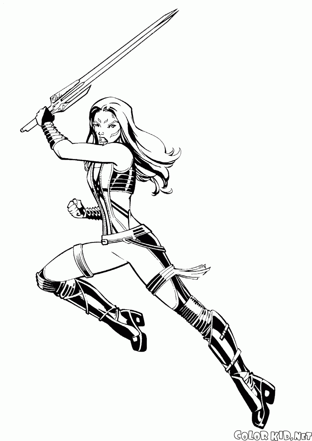 Desenho para colorir - Gamora em batalha