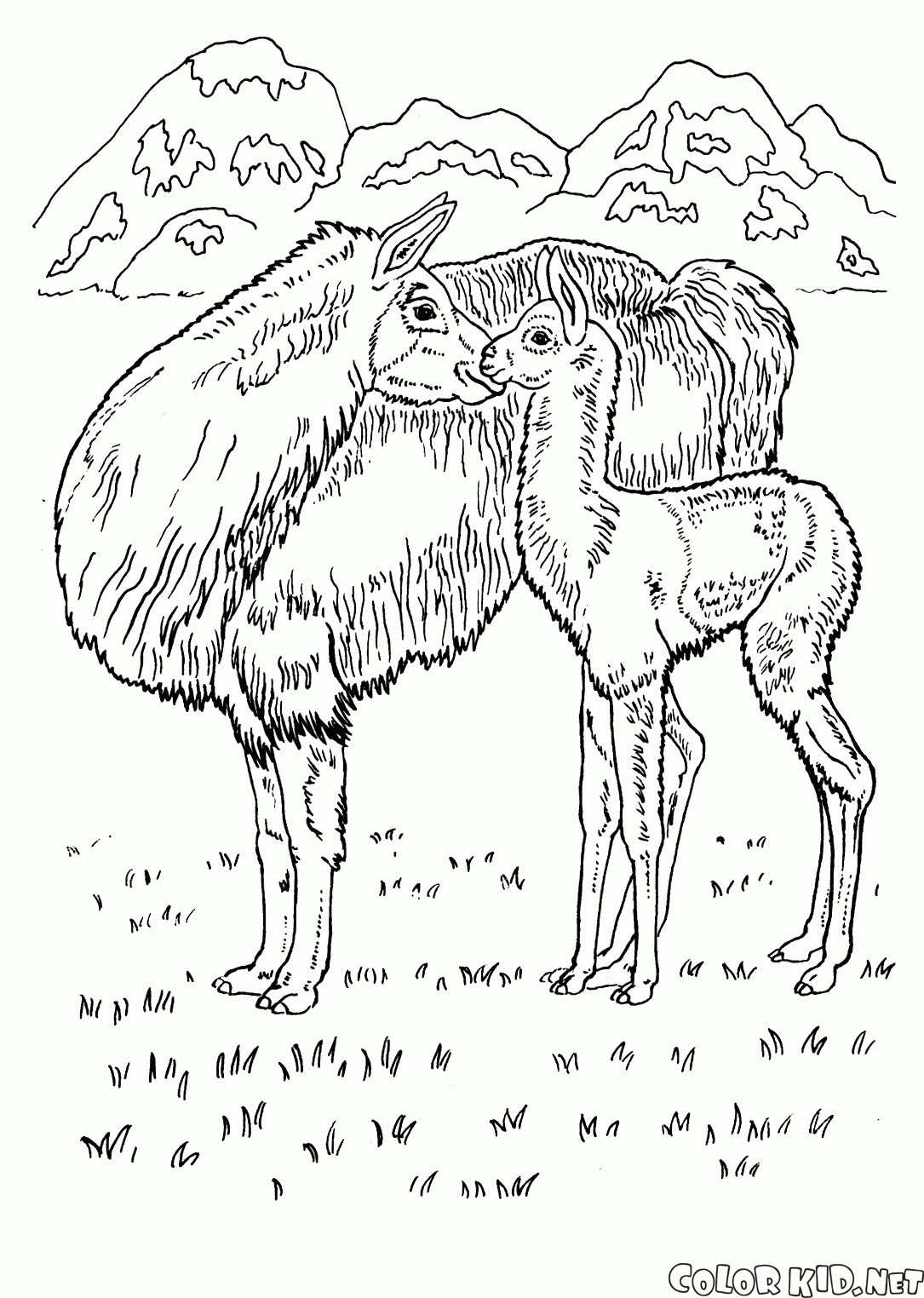 Desenho para colorir - Llamas no deserto