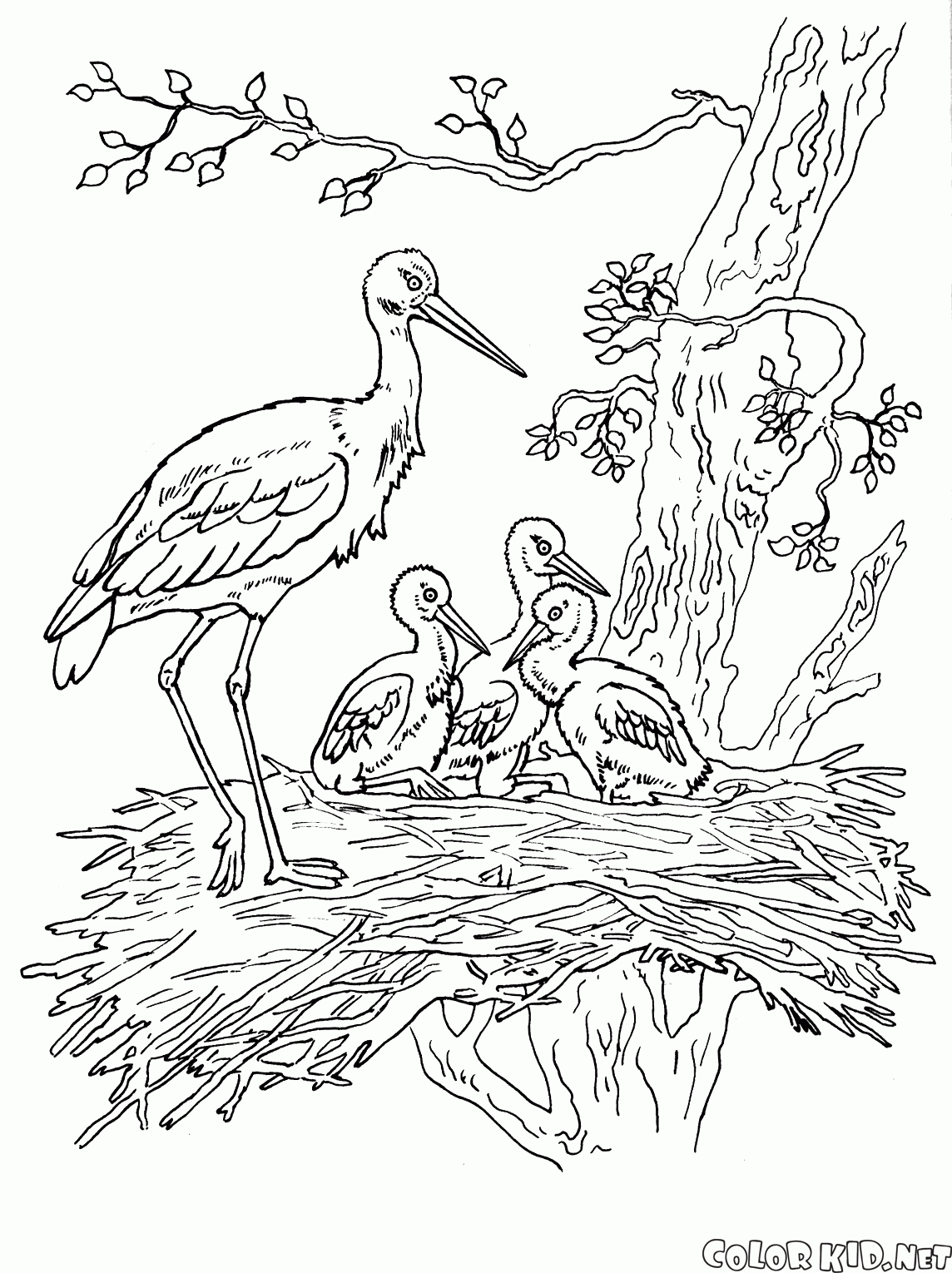 Desenho para colorir - Cegonhas e pintos