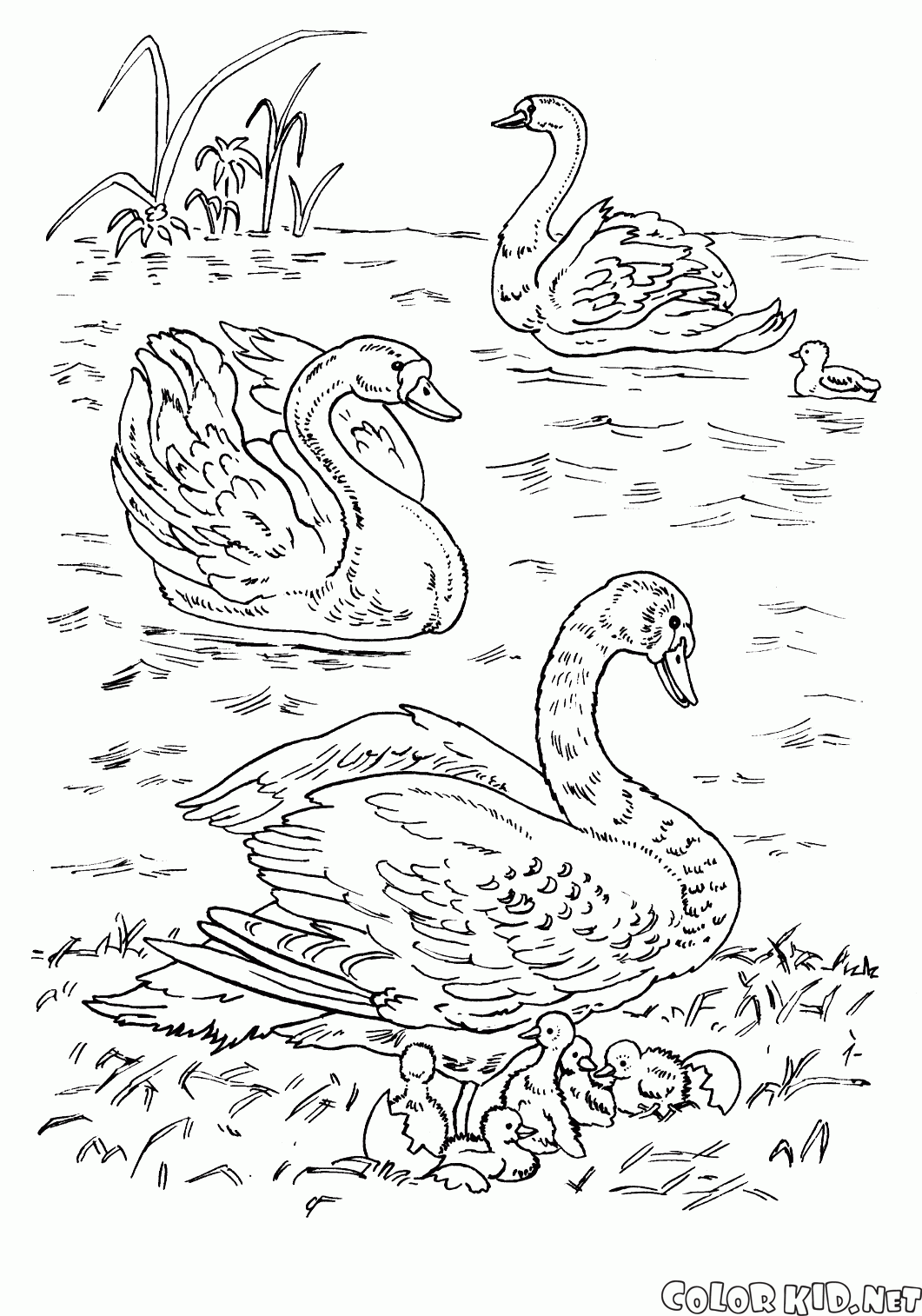 Desenho para colorir - Cisnes no lago