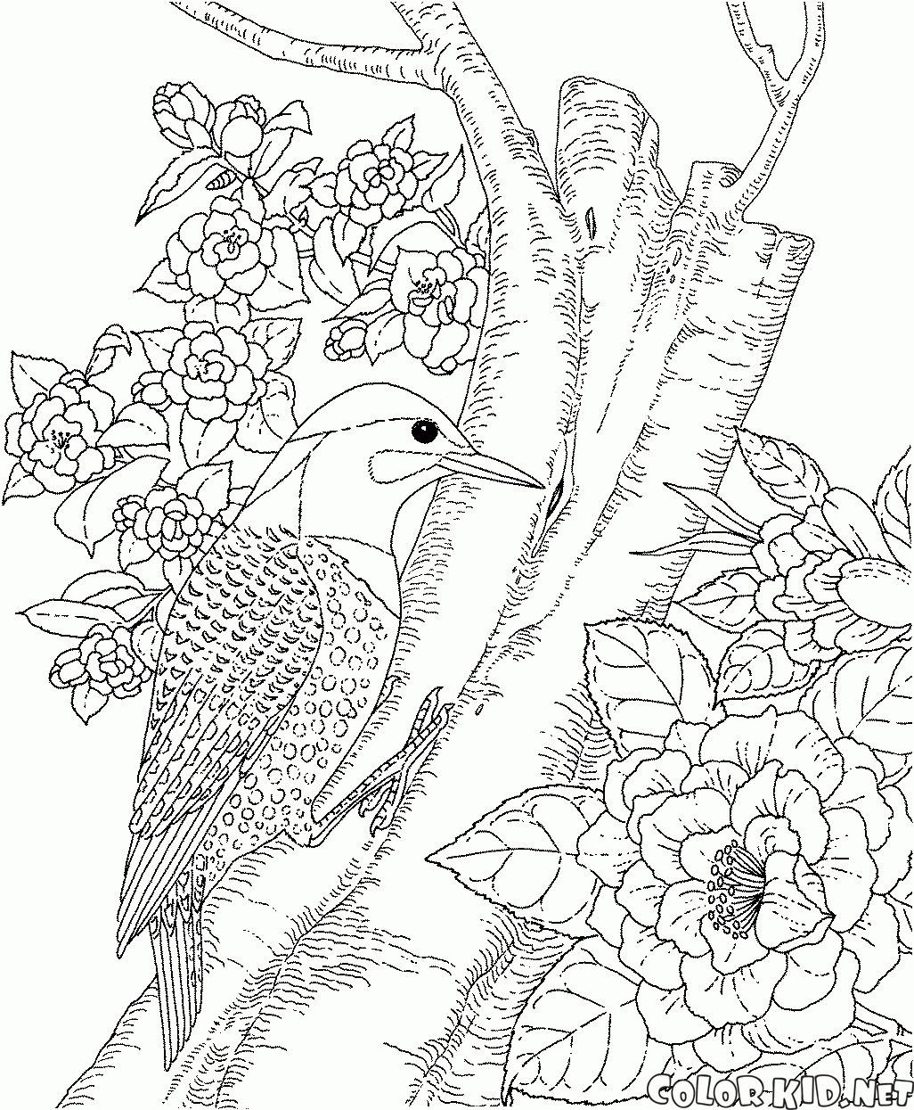 Desenho para colorir - Pica-pau na Floresta