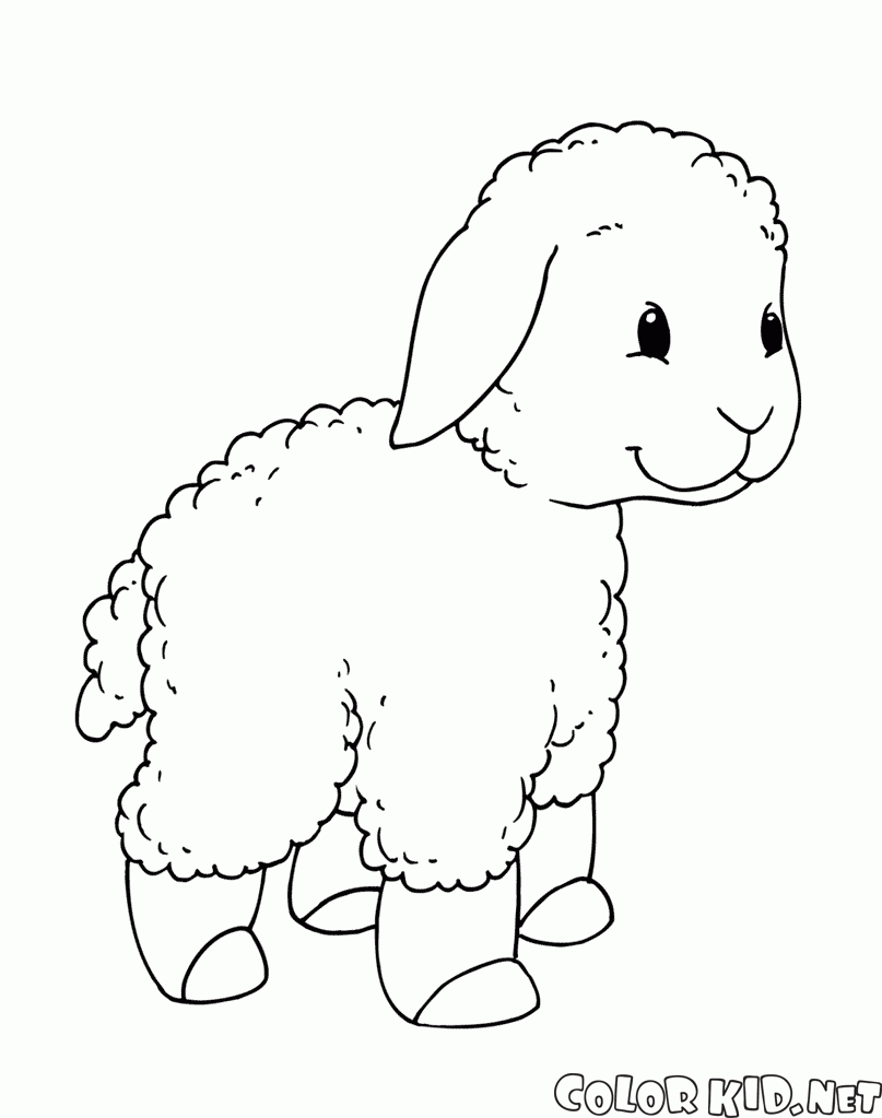 Desenho para colorir - Cordeiro pequeno em uma caminhada