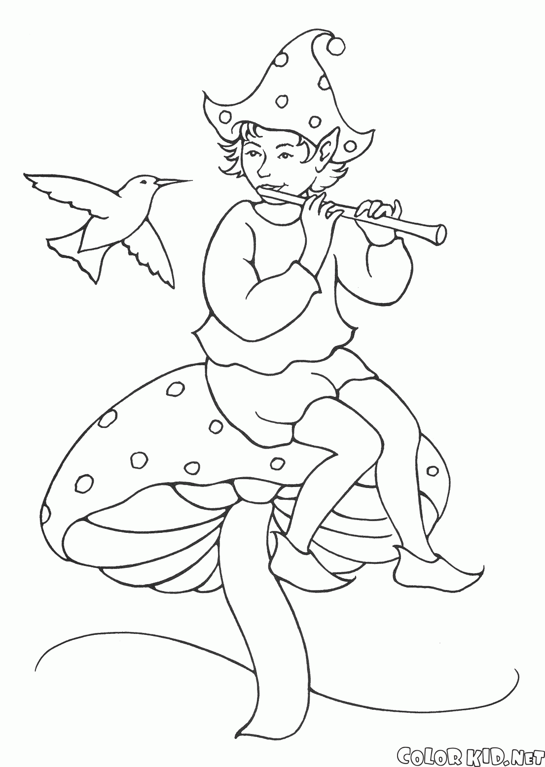 Desenho para colorir - Elf tocando flauta
