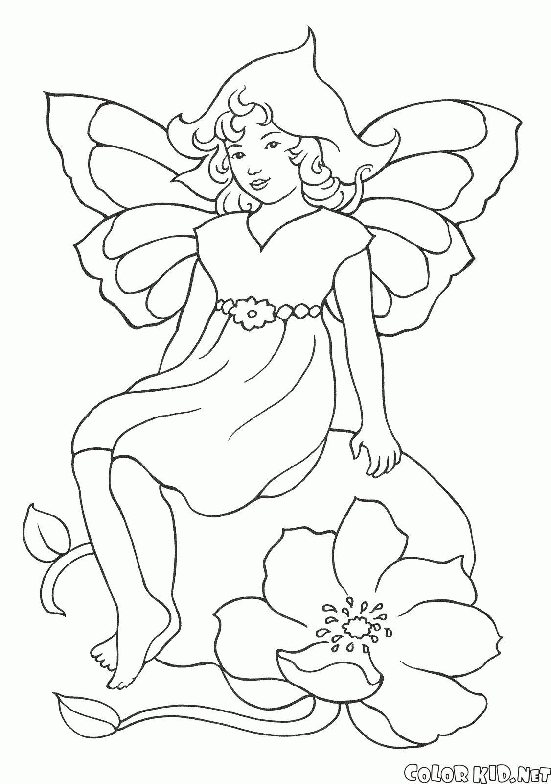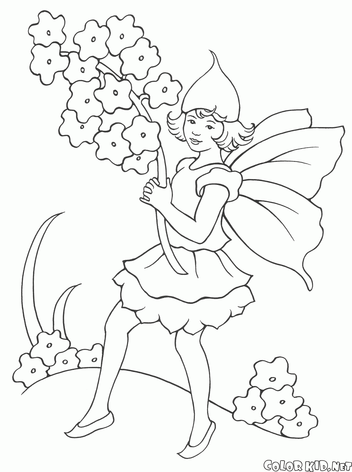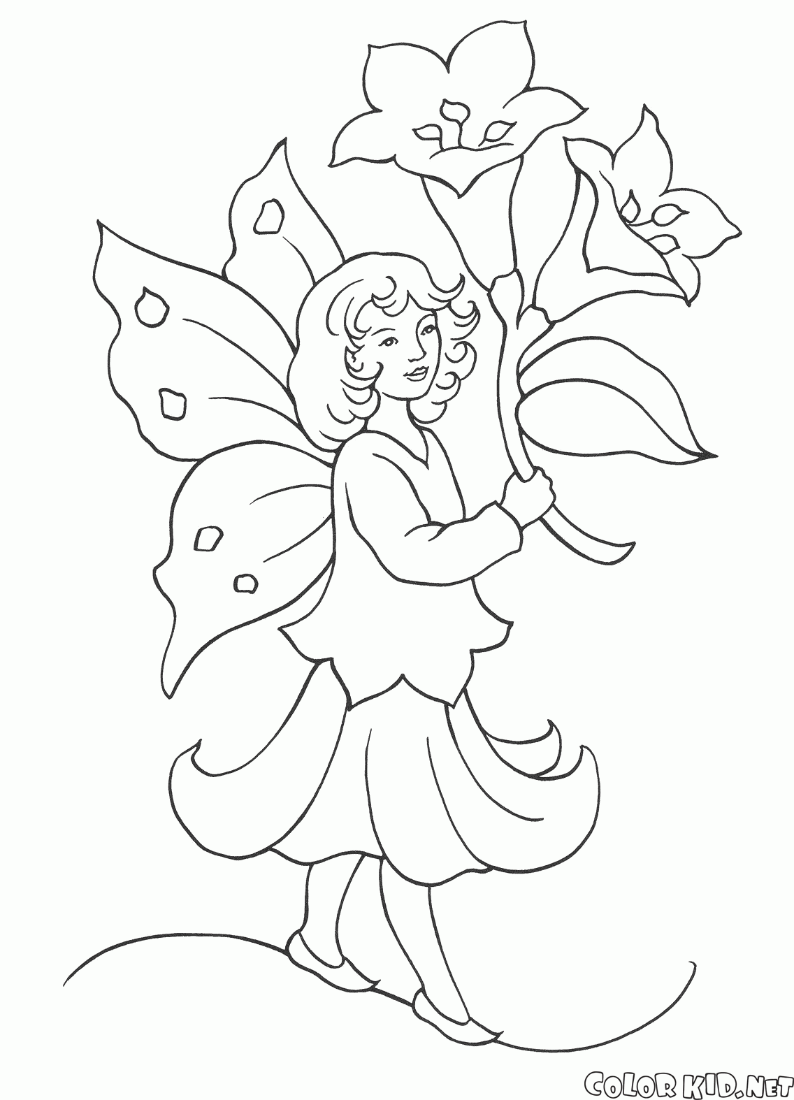 Desenho para colorir - Fada e lírios