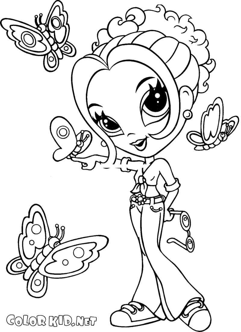 Desenho para colorir - Uma menina e uma borboleta