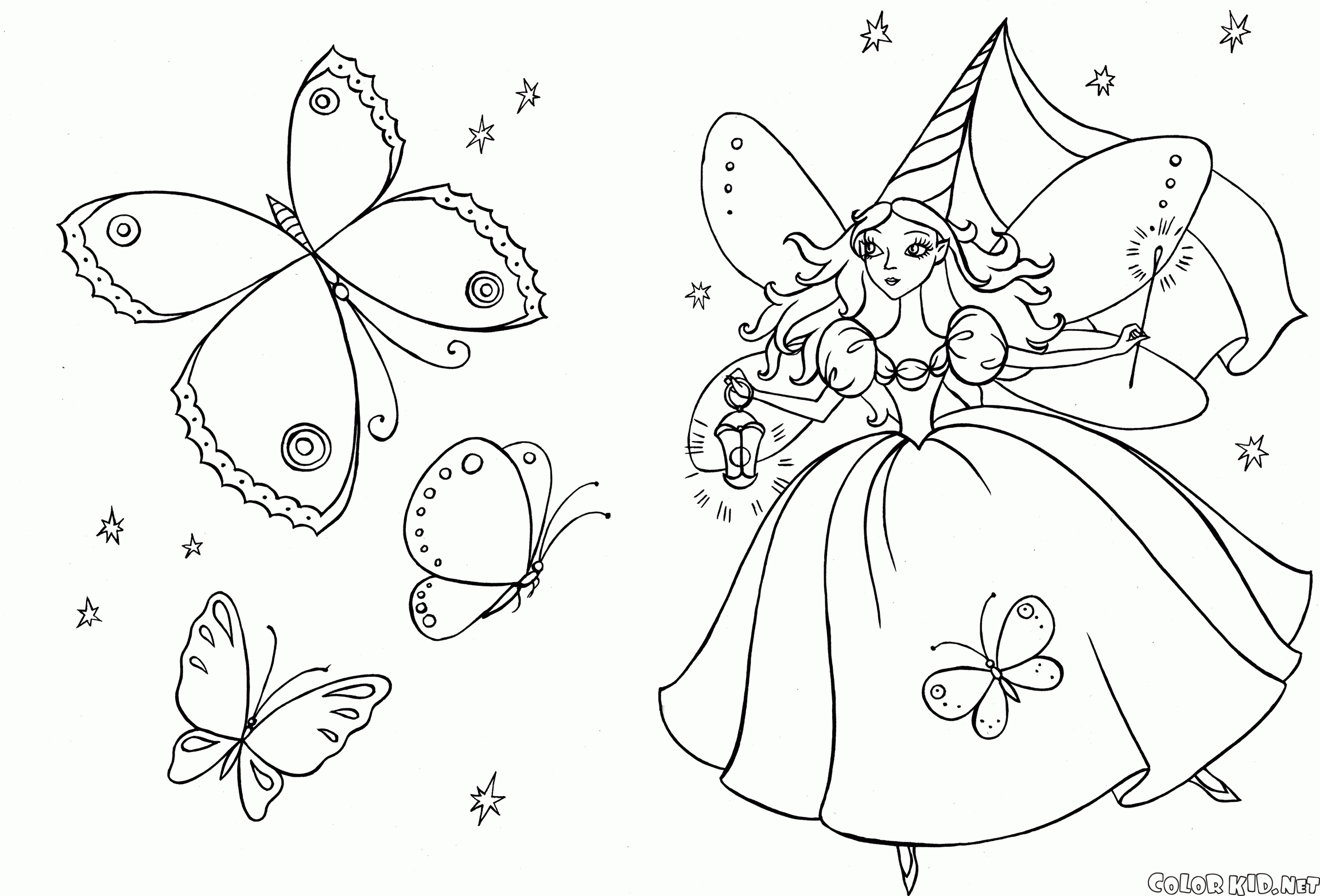 Desenho para colorir - Fada em um belo jardim