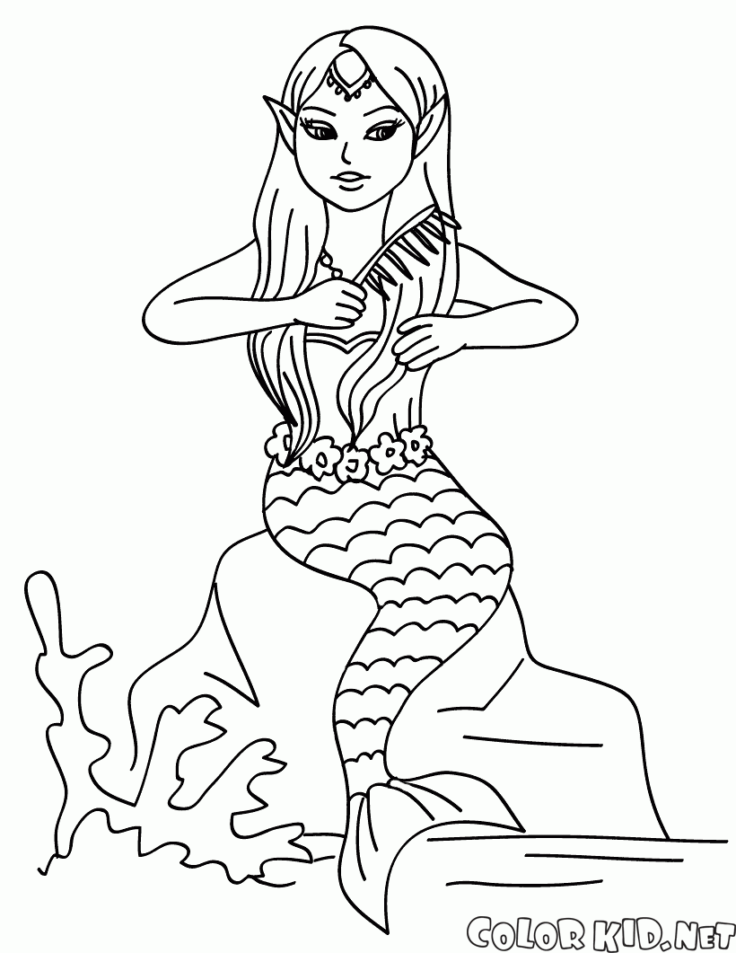 Sereia que penteia seu cabelo