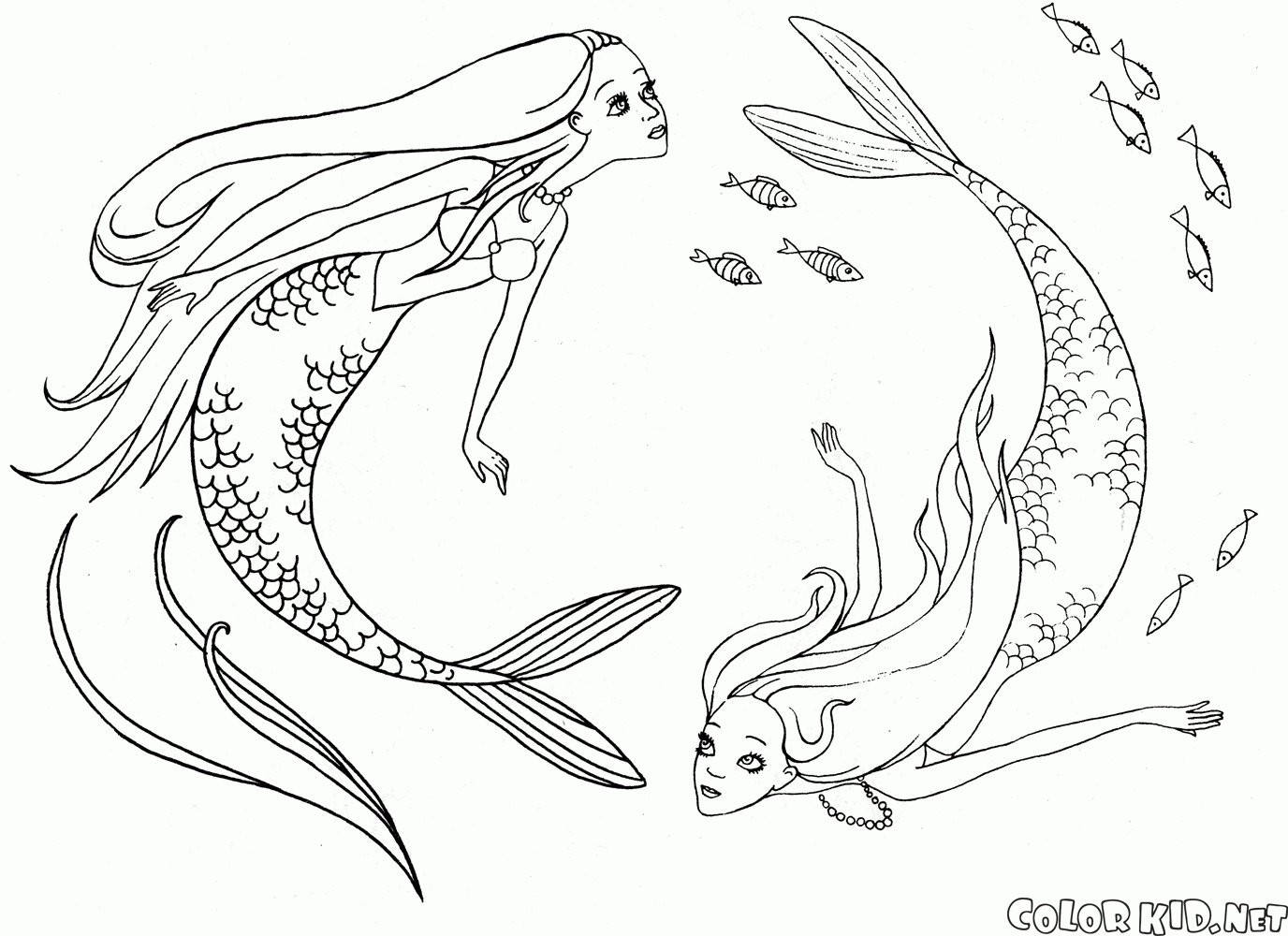 You can download and print out the coloring pages for kids Sereias natação from our website.