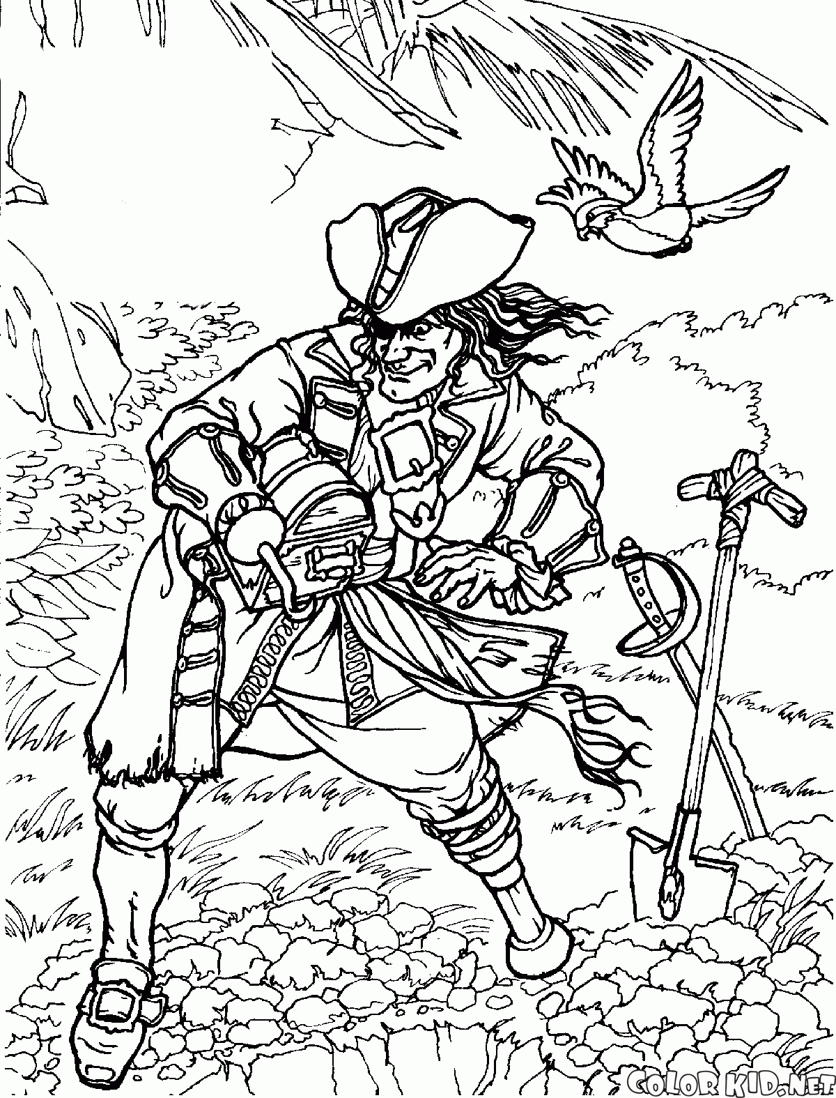 Desenho para colorir - Pirata esconde tesouros